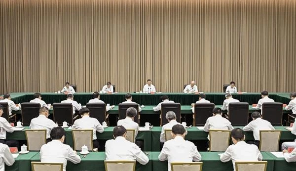 中共中央政治局常委、中央辦公廳主任蔡奇出席匯報會。