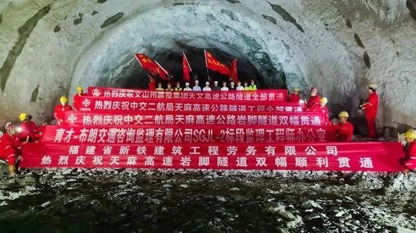 近日,隨著云南天麻高速公路重點控制性工程——全線最長隧道巖腳隧道雙幅貫通,標(biāo)志著天麻高速所有隧道全線貫通。