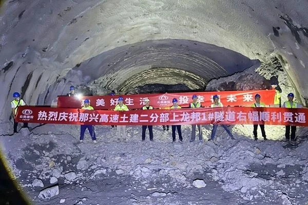 此外,那灑至興街高速公路上龍邦1號隧道右幅順利貫通。上龍邦1號隧道地處廣南縣那灑鎮(zhèn)上龍邦村東北側(cè),為分離式隧道,右幅全長755米,最大埋深84.3米。