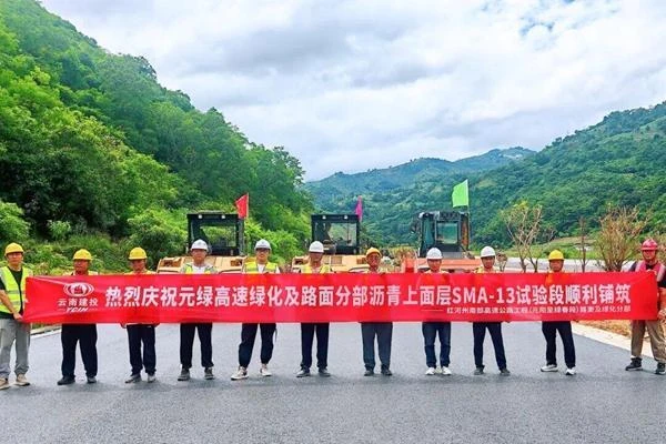 近日,元陽至綠春高速公路項(xiàng)目完成瀝青混凝土上面層試驗(yàn)段鋪筑,路面工程施工進(jìn)入新階段。本次試驗(yàn)段位于元陽立交DK0+292-DK0+692段,鋪筑長度400米,設(shè)計(jì)厚度4厘米,路面寬度11米,采用改性瀝青瑪蹄脂混凝土SMA-13進(jìn)行施工,各項(xiàng)指標(biāo)符合設(shè)計(jì)與規(guī)范要求。