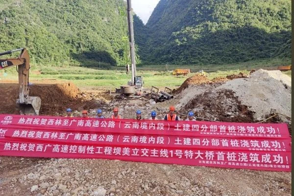 近日,西林至廣南高速公路(云南段)項(xiàng)目壩美立交主線1號特大橋首棵樁基順利完成澆筑。西廣高速主線共設(shè)橋梁32座(雙幅),其中壩美立交主線1號特大橋是該項(xiàng)目的關(guān)鍵控制性工程之一,左幅長1804.68米,右幅長1809.53米。